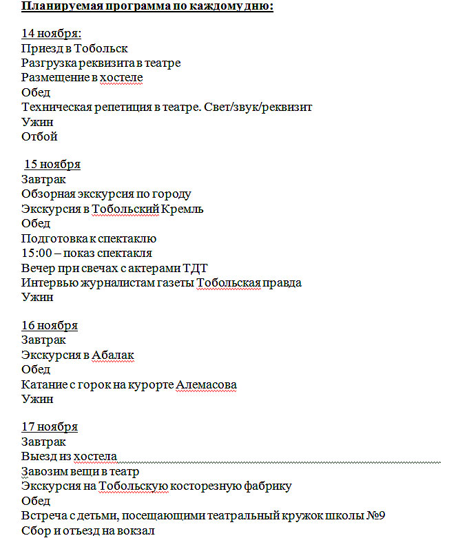 Гастрольная льготная поездка в жемчужину Сибири