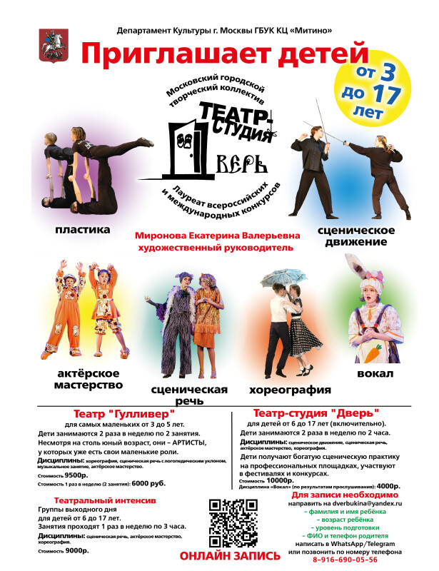 Театр-студия «Дверь» - это театр для детей от 6 до 17 лет (включительно).