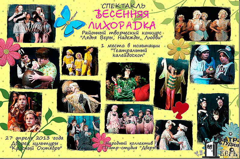 Комментарий: Я бабушка одной из учениц театральной студии Дверь . Когда я первый раз пошла на спектакль , где участвовала моя внучка , думала что , буду просто умиляться присутствию внучки на сцене и не было ожидания чего-то эдакого, просто детская самодеятельность. А я увидела , как дети от самых маленьких до взрослых не просто играют , а живут на сцене. Свободно держатся , естественно говорят. Я попала в настоящий серьёзный взрослый театр. Весенняя лихорадка история о том, как просыпается природа. Заводной музыкальный спектакль , с хорошим добрым юмором, замечательным вокалом и шикарными костюмами. Да, заметила для себя , как дети красиво поют!!! Здорово, что существуют такие коллективы , и как приятно видеть увлечённых детей. С нетерпением жду премьер .