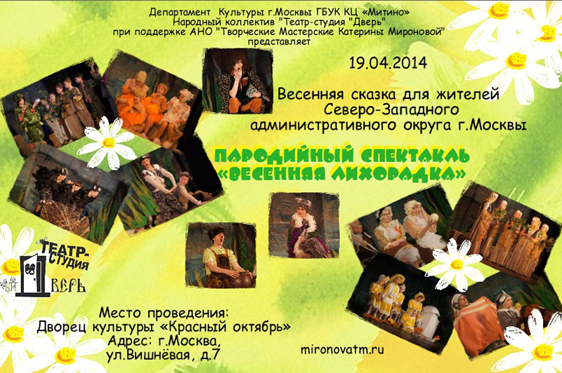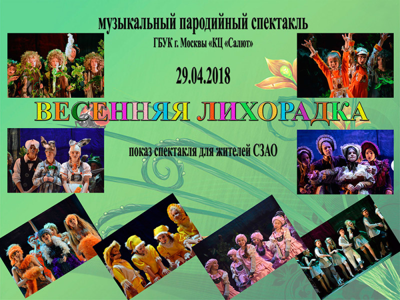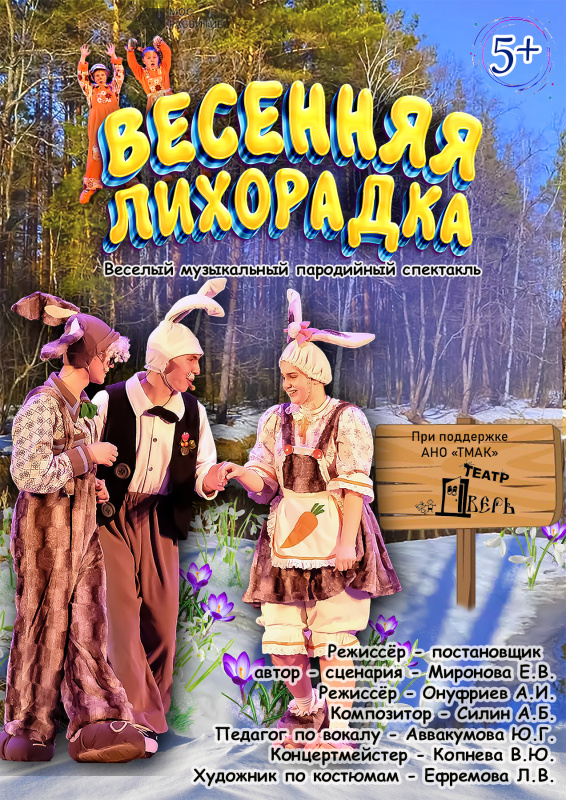 «Весенняя лихорадка» - веселый музыкальный, пародийный спектакль на тему чувств переживаний, волнений, причиной которых становиться весна. Обязательно приходите сами и захватите с собой детей от 3 до 106 лет!