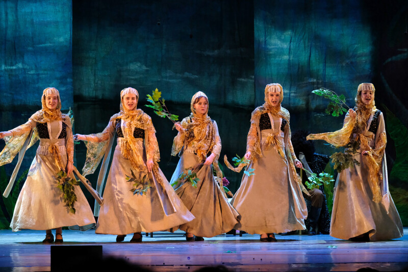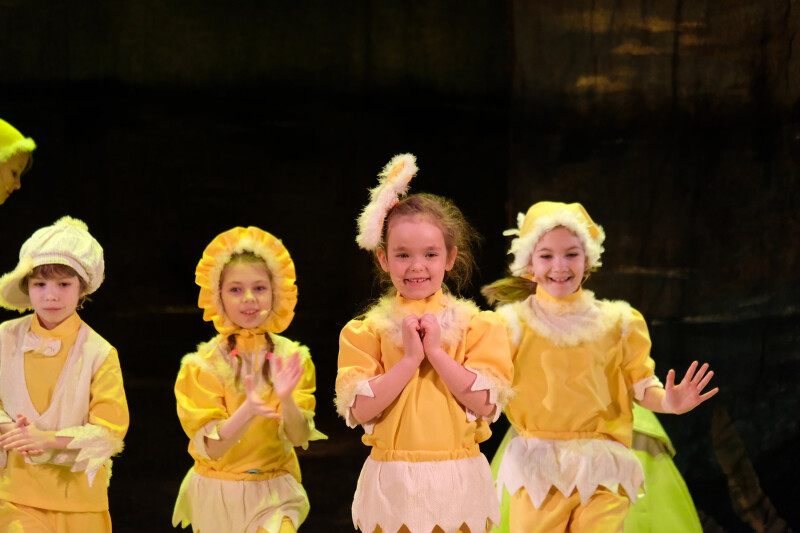 Много музыки ,интересный сюжет на тему прихода весны в жизнь сказочного леса и его жителей. Впечатлила игра актеров - детей, в особенности поразили зайцы, белки, орлята, курицы, конечно же, впечатлила сова. Главный персонаж гусеница. И, конечно же, лес. Все персонажи разные и интересные. Дети в зале очень переживали за судьбу курицы, когда та стремилась улететь посмотреть мир, а не сидеть всю жизнь в курятнике. Верили всему происходящему.