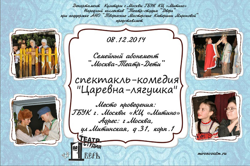 Сказка ложь, да в ней намек! Сказки любят и взрослые и дети, порой её так не хватает в нашей жизни. Хорошо знакомая всем русская народная сказка «Царевна-лягушка» поразит Вас своей современностью, развеселит и создаст хорошее настроение надолго.