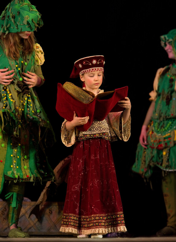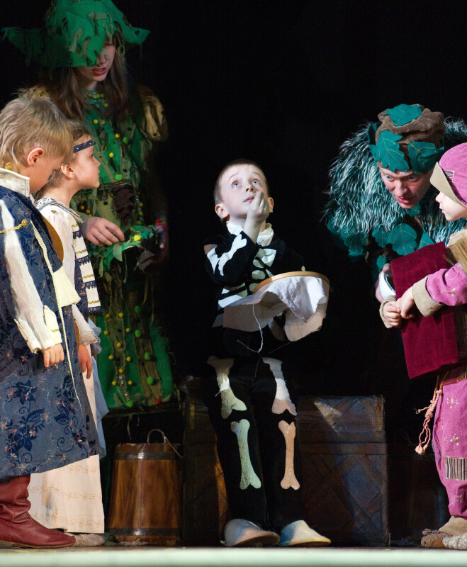Комментарий: Спектакль очень понравился. Оригинальная постановка, интересный сценарий, красивые продуманные костюмы! На сцене можно увидеть героев русских народных сказок: Емелю, Кощея, Василису и других. Композиция очень добрая и веселая! Смеялись от всей души. Детки - настоящие артисты!!!