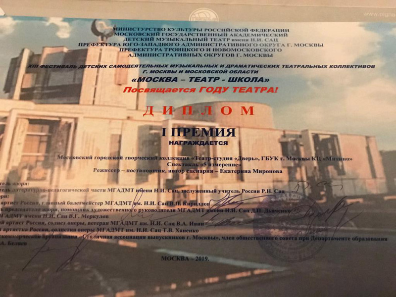 Поздравляем с отличным выступлением и высокой оценкой жюри на Фестивале детских театральных коллективов Москвы и Московской области «Москва - Театр - Школа», который проходил в Детском музыкальном театре имени Наталии Сац: