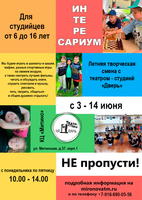 с 3-14 июня, театр-студия "Дверь" приглашает на летнюю творческую смену "Интересариум"!
