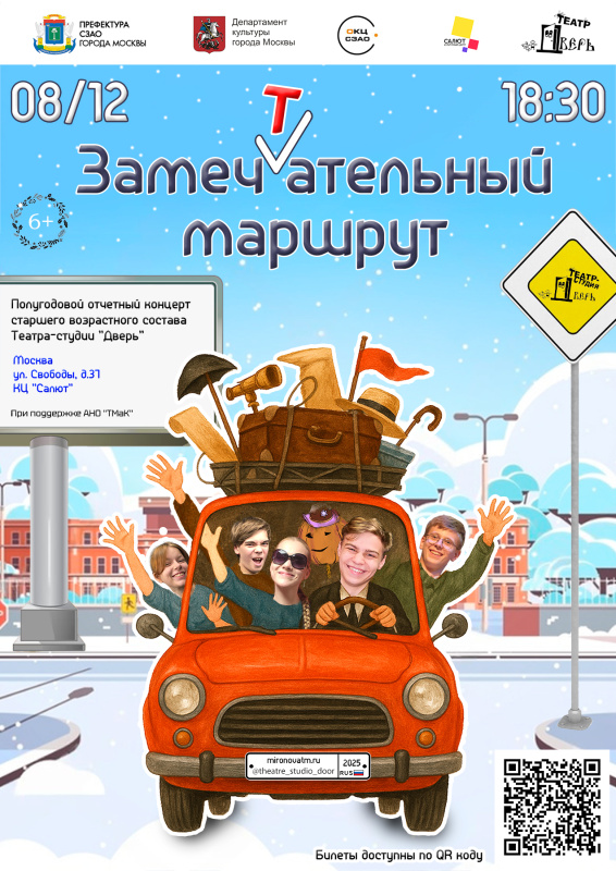 Приглашаем вас на полугодовой отчётный концерт старшего состава театра-студии "Дверь" «Замечтательный маршрут». Это путешествие, в котором каждая остановка является маленькой ступенькой к мечте стать настоящим актером. Наш маршрут ведет туда, где рождается вдохновение.