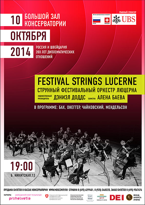 Приглашаем всех желающих 10 октября 2014 г. в Большой зал Консерватории. В программе: "Струнный фестивальный оркестр Люцерна". Начало концерта: в 19:00.